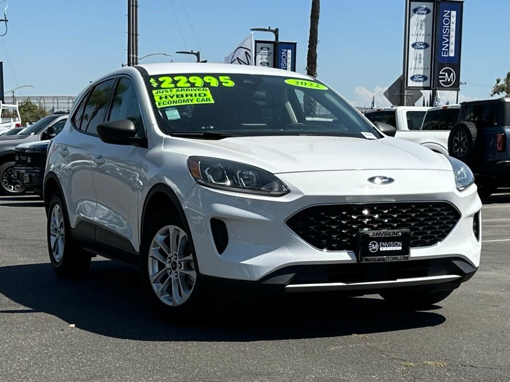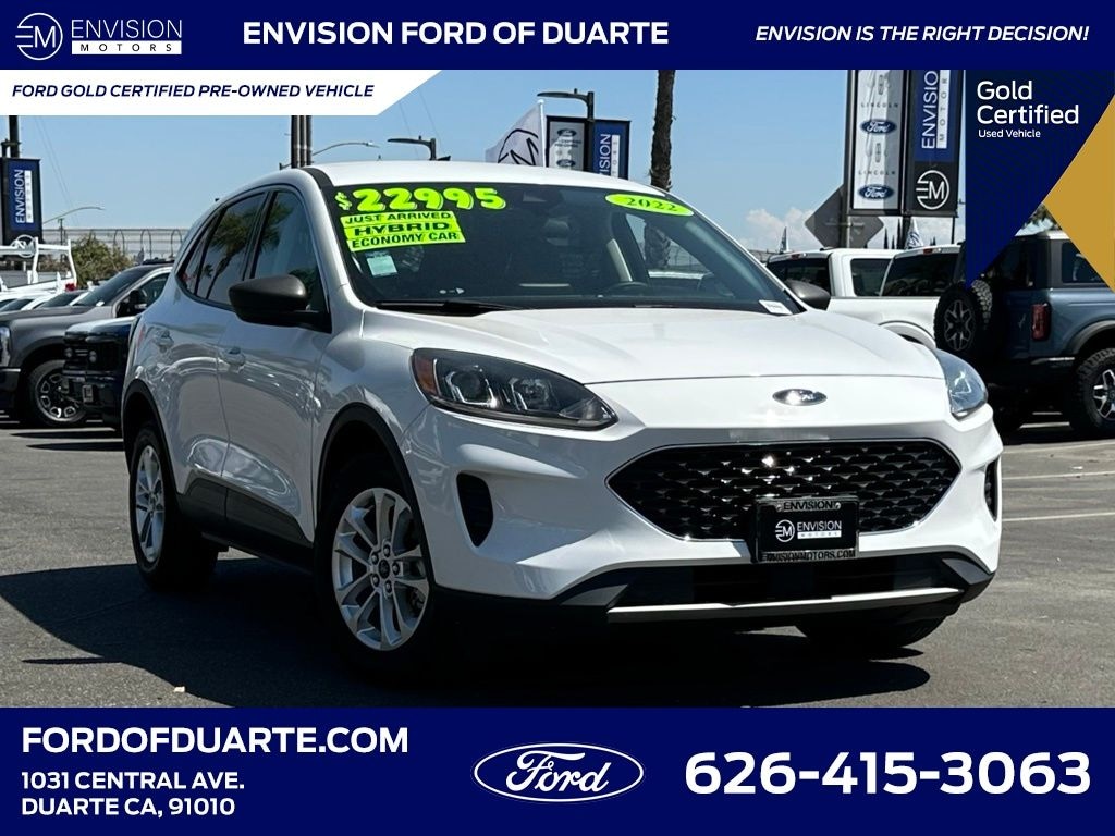 Certified. Oxford White 2022 Ford Escape Hybrid SE FWD eCVT 2.5L iVCT Escape Hybrid SE, 4D Sport Utility, 2.5L iVCT, eCVT, FWD, Oxford White, 8-Way Power Driver Seat, Convenience Package, Dual-Zone Electronic Automatic Temperature Control, Fold-Down Rear Center Armrest w/2 Cupholders, Halogen Projector Headlamps w/LED Signature, Power Liftgate.