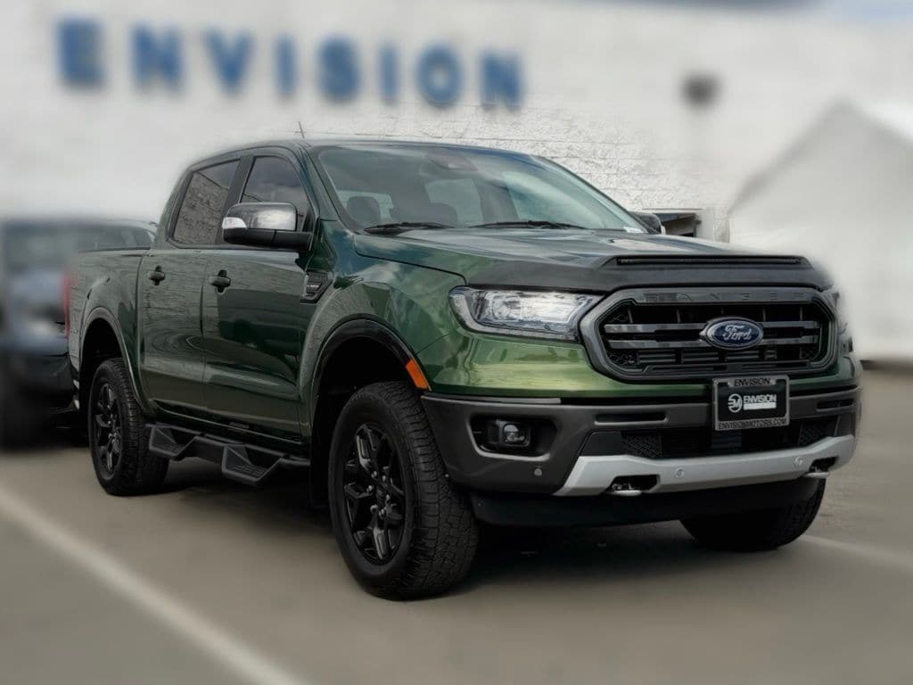 Certified. Eruption Green Metallic 2023 Ford Ranger Lariat 4WD 10-Speed Automatic EcoBoost 2.3L I4 GTDi DOHC Turbocharged VCT Ranger Lariat, 4D Crew Cab, EcoBoost 2.3L I4 GTDi DOHC Turbocharged VCT, 10-Speed Automatic, 4WD, Eruption Green Metallic, Ebony Leather.