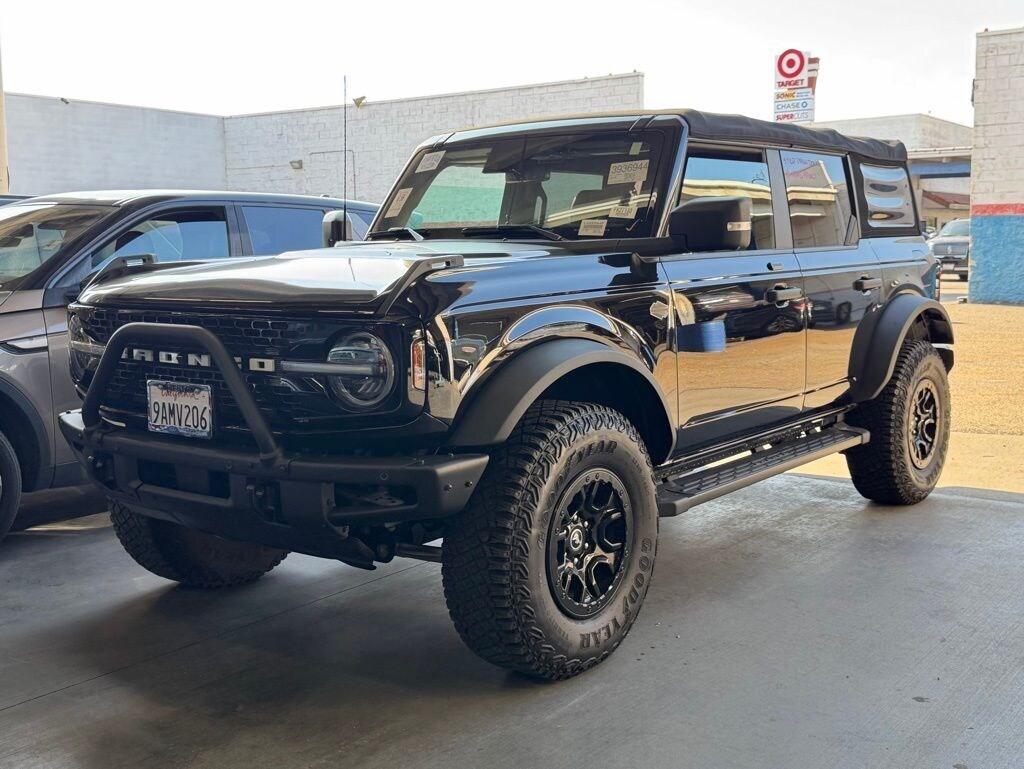 Shadow Black 2022 Ford Bronco Wildtrak 4WD 10-Speed Automatic 2.7L EcoBoost V6 Bronco Wildtrak, 4D Sport Utility, 2.7L EcoBoost V6, 10-Speed Automatic, 4WD, Shadow Black, Black Onyx Cloth, 12" LCD Capacitive Touchscreen w/Swipe Capability, 2 Smart Charging USB Ports In Dashboard, 360-Degree Camera, Adaptive Cruise Control, Additional Sound Deadening, Connected Built-In Navigation, Equipment Group 354A Lux Package, Evasive Steering Assist, Front Parking Sensors, Heated Steering Wheel, Information on Demand Panel, Navigation system: Connected Navigation, Radio: B&O Sound System by Bang & Olufsen, Sideview Mirrors, Universal Garage Door Opener, Wireless Charging Pad.