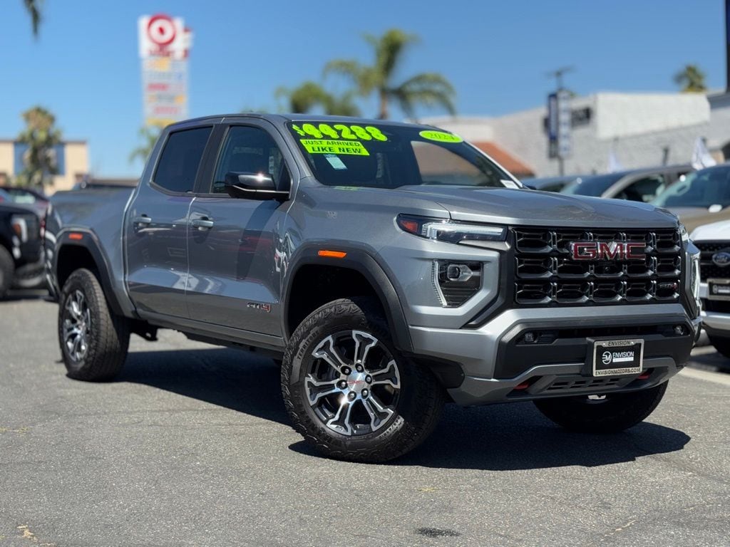 Sterling Metallic 2024 GMC Canyon AT4 4WD 8-Speed Automatic 2.7L I4 Turbocharged DOHC 16V LEV3-SULEV30 310hp Canyon AT4, 4D Crew Cab, 2.7L I4 Turbocharged DOHC 16V LEV3-SULEV30 310hp, 8-Speed Automatic, 4WD, Sterling Metallic, Jet Black/Timber Cloth, 120-Volt Bed Mounted Power Outlet, 2 Rear USB Ports in Center Console (Charge-Only), 8-Way Power Driver Seat Adjuster, Adaptive Cruise Control, Automatic Emergency Braking, Automatic Locking Rear Differential, Canyon Pro Safety, Canyon Safety Plus Package, Driver & Front Passenger Illuminated Visors, Dual-Zone Automatic Air Conditioning, EZ-Lift & Lower Tailgate, Following Distance Indicator, Forward Collision Alert, Front LED Fog Lamps, Front Pedestrian & Bicyclist Braking, HD Surround Vision, Heated Driver & Front Passenger Seats, Heated Power-Adjustable Outside Mirrors, Inside Rear-View Auto-Dimming Mirror, Integrated Trailer Brake Controller, IntelliBeam Automatic High Beam On/Off, Interior Overhead Courtesy Light w/Dual Reading Lamp, Lane Keep Assist w/Lane Departure Warning, Manual Rear-Sliding Window, MultiStow Tailgate, Navigation System, Power Driver Lumbar Control Seat Adjuster, Preferred Equipment Group 4SG, ProGrade Trailering System, Rear Cross Traffic Braking, Rear of Console 120-Volt Power Outlet, Rear Pedestrian Alert, Rear-Window Electric Defogger, Remote Vehicle Starter System, Tailgate Keyed Cylinder Lock, Technology Package, Tilt & Telescopic Manual Steering Column, Trailering App System, Trailering Package, Ultrasonic Rear Park Assist.