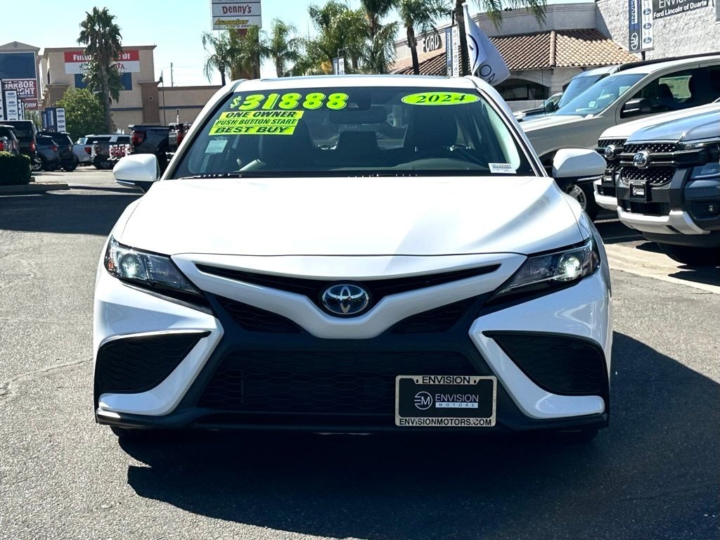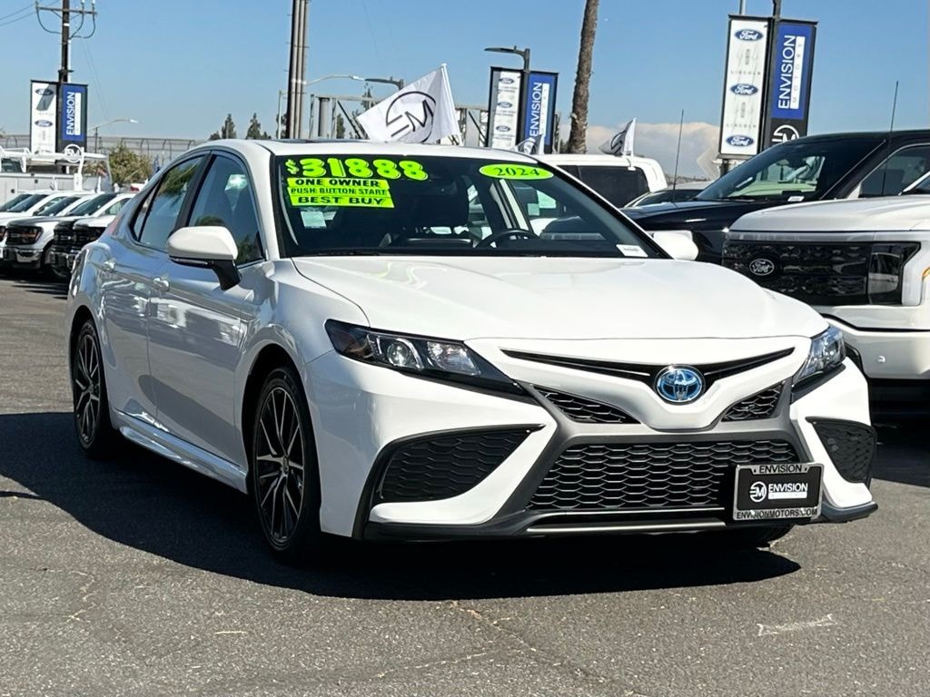 Ice 2024 Toyota Camry Hybrid SE FWD eCVT 2.5L I4 DOHC 16V Camry Hybrid SE, 4D Sedan, 2.5L I4 DOHC 16V, eCVT, FWD, Ice, Auto-Dimming Rear-View Mirror, Convenience Package, HomeLink, Power Tilt/Slide Moonroof.